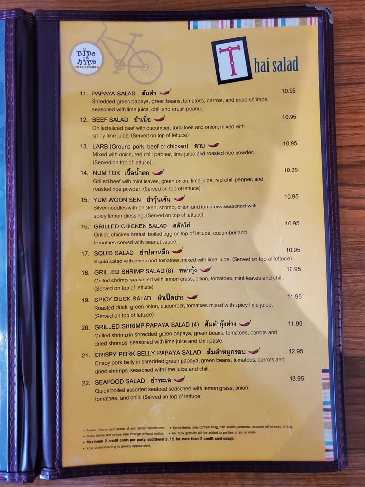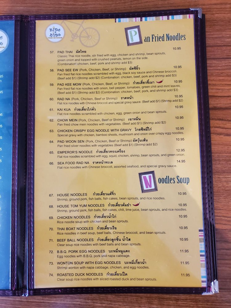 Nine & Nine Thai Kitchen Menu (Update 2025)
